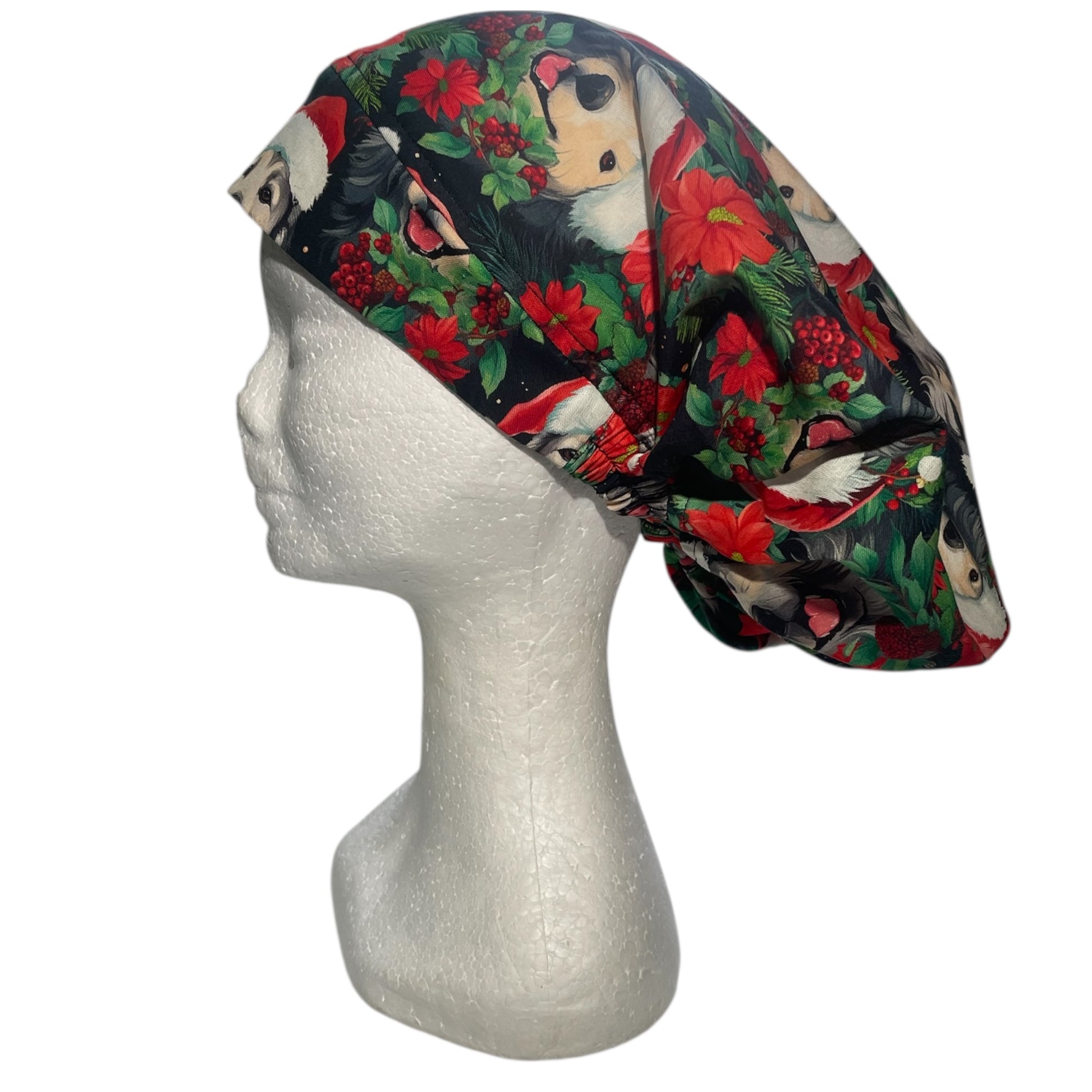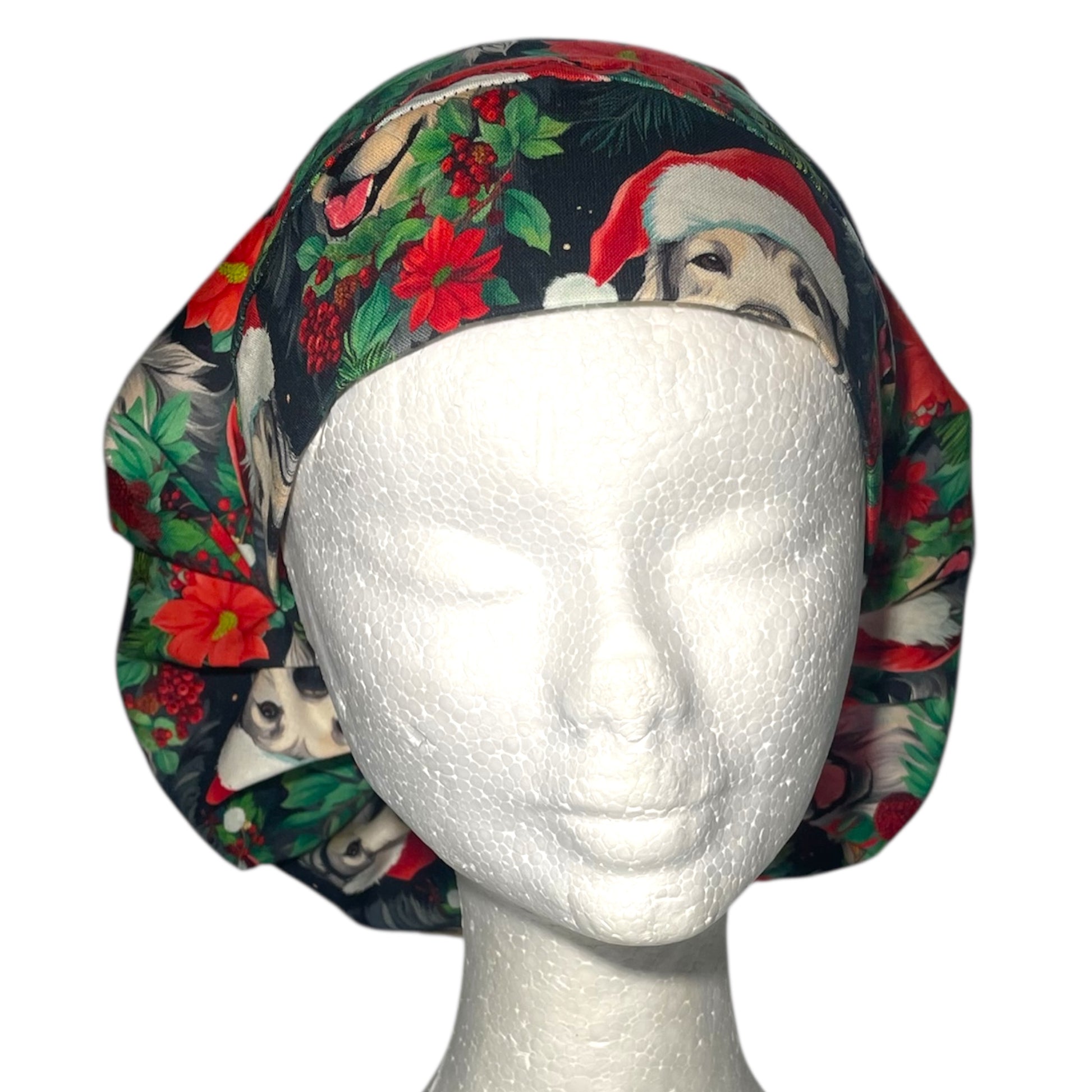 Australian Made Scrub Cap- Bouffant Style Dogs with Santa Hats