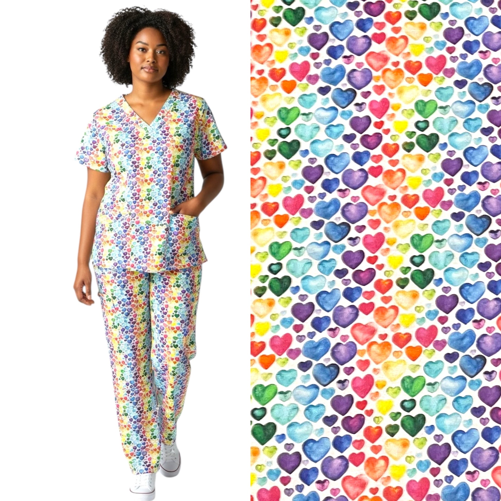 Australian Made Scrub Set- Rainbow Hearts
